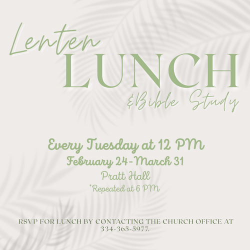 RSVP for lunch by contacting the church office, 334-365-5977.