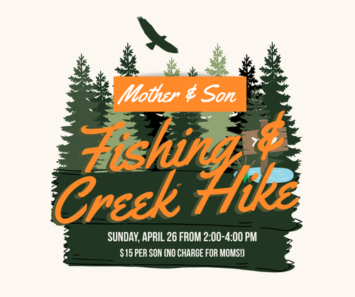 Mothers and Sons are invited to join Prattville FMC for a fun afternoon at Lanark! Sunday, April 26 from 2:00 to 4:00 in the afternoon. We will fish for an hour, have a fun snack and then head out to the creek for a hike! Make sure you come ready to get wet! Cost is $15 per son, mothers free with paid son.