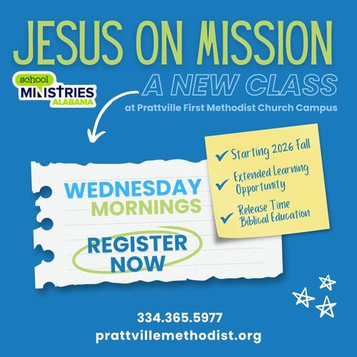 Rising 7th and 8th graders: If you have 1st period PE, you can register for our SMA class here at church. Each Wednesday, we bring students from Prattville Junior High School to our church for Release Time Bible Education class. We pick up and return you to the school in time for second period. You would just miss your PE class on Wednesdays. You can register for this class through PJHS. Talk to your counselor about this option!