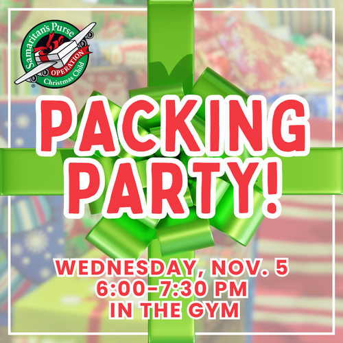 Sunday, Nov. 2 6:00-7:30, shoebox folding and gym setup;