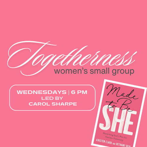 Join us for Togetherness, a women's small group that meets every Wednesday night from 6 to 7 PM in the Parlor.
